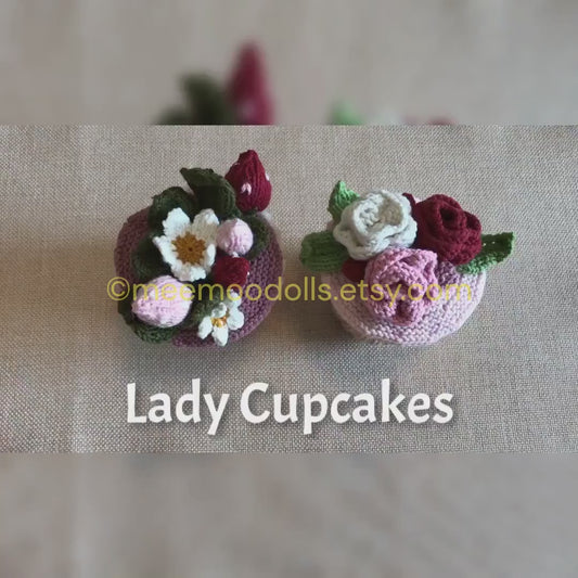 Knit Lady Rose Cupcakes. Knitted toy patterns. Knit topsy turvy doll pattern. Meemoodolls.