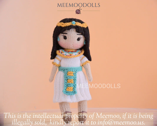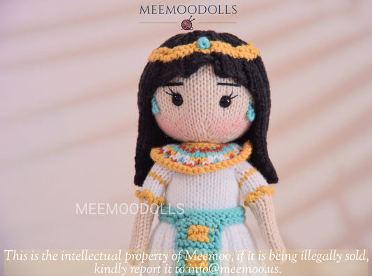 Knit Cleopatra. Knitted toy Patterns. Knit Iconic Doll. Meemoodolls.