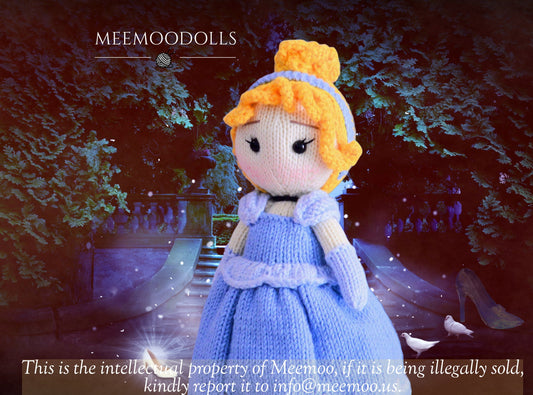 Knit Cendrillon - The little glass slipper princess. Knitted toy Patterns. Meemoodolls.