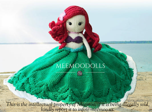 Knit Mermaid Baby Blanket. Knit Security Blanket. Knitted toy patterns. Meemoodolls