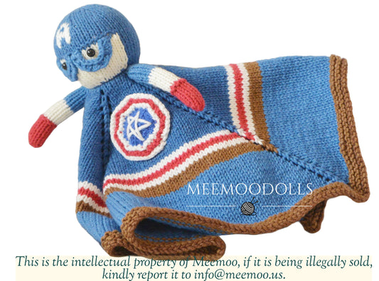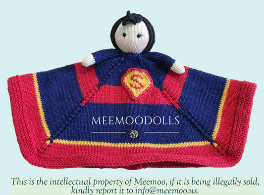Meemoodolls. BLUE Security Blanket. Knitting Doll Pattern.
