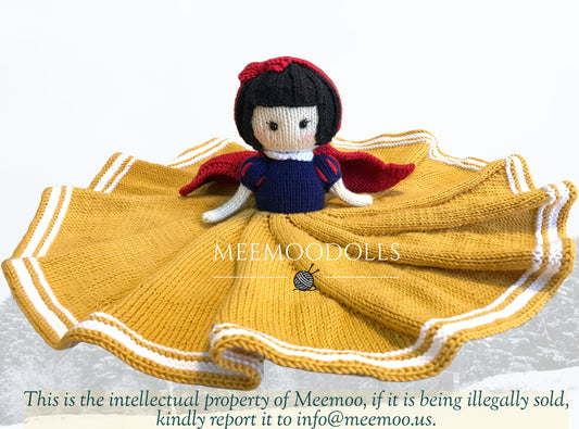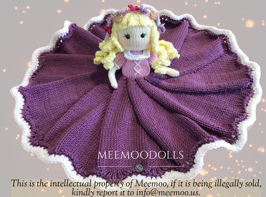 Golden Hair Princess Baby Blanket. Guide to knit security blanket. Knitted toy Patterns. Meemoodolls